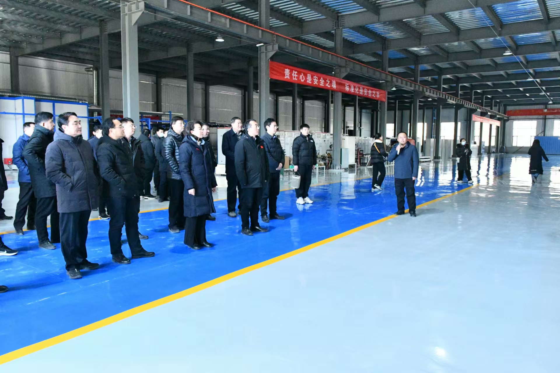 2023年12月惠民縣縣委書記王瑋書記、許健縣長以及各級領導來華億電器視察工作,麻店鎮黨委書記盧勇、鎮長孟強陪同,華億電器總經理王振東接待。